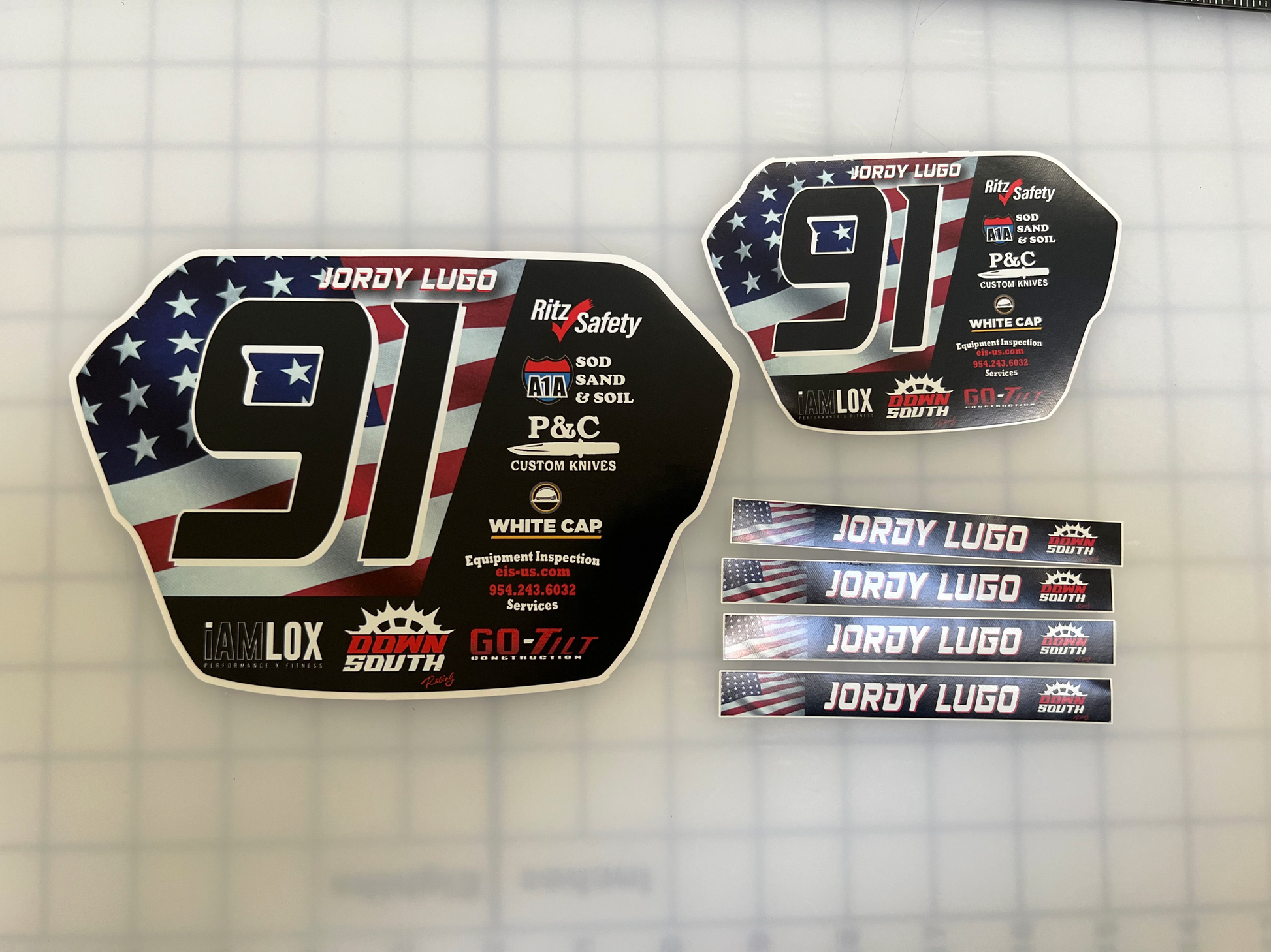 Our Custom BMX combo is a set of accessories designed to personalize and enhance the appearance of your BMX bike. It includes a number plate insert, bumper sticker for your vehicle, and four name tags, all made from high-quality vinyl and laminated for durability.